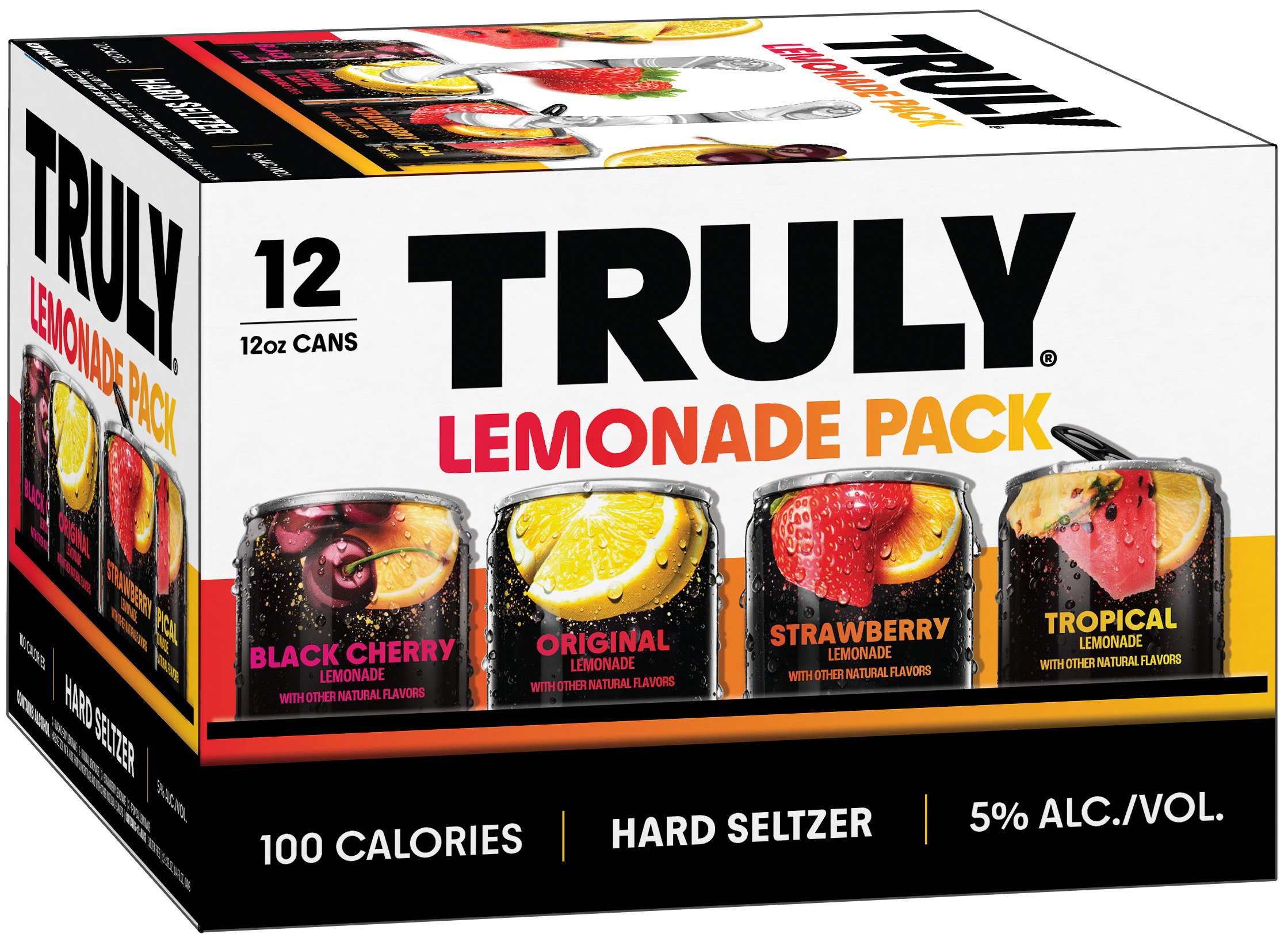The Truly Hard Seltzer Lemonade Variety Pack includes 3 slim cans each of 4 refreshing Lemonade styles including Original Lemonade Strawberry Lemonade Mango Lemonade and Black Cherry Lemonade. Not available for online purchase. Truly Hard Seltzer Lemonade is the perfect mix of refreshing hard seltzer and sweet lemonade for a drink thats big on taste and low on calories.